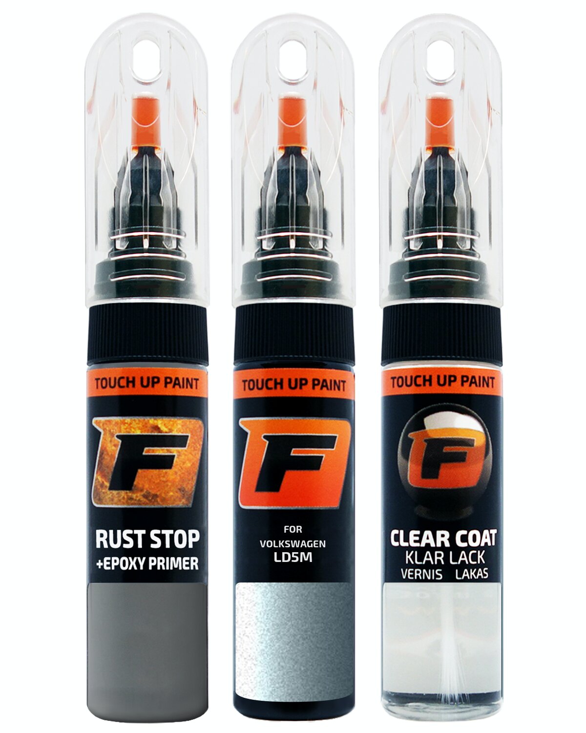 The touch up pen is filled with original VOLKSWAGEN GOLF LD5M, 3N, 9583, D5M GLACIER/EMOTION BLUE German manufacturer paint which matches factory colours.